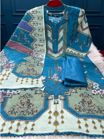 Premium Quality Luxury Lawn Unstitched Collection - 950 Blue & Yellow